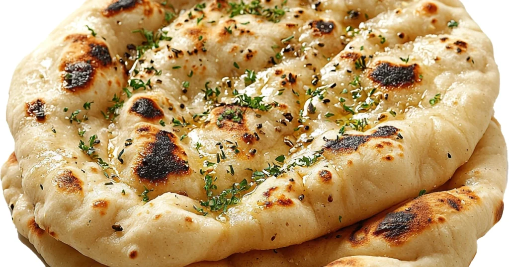 Naan is a leavened Indian flatbread, often enriched with yogurt and olive oil.