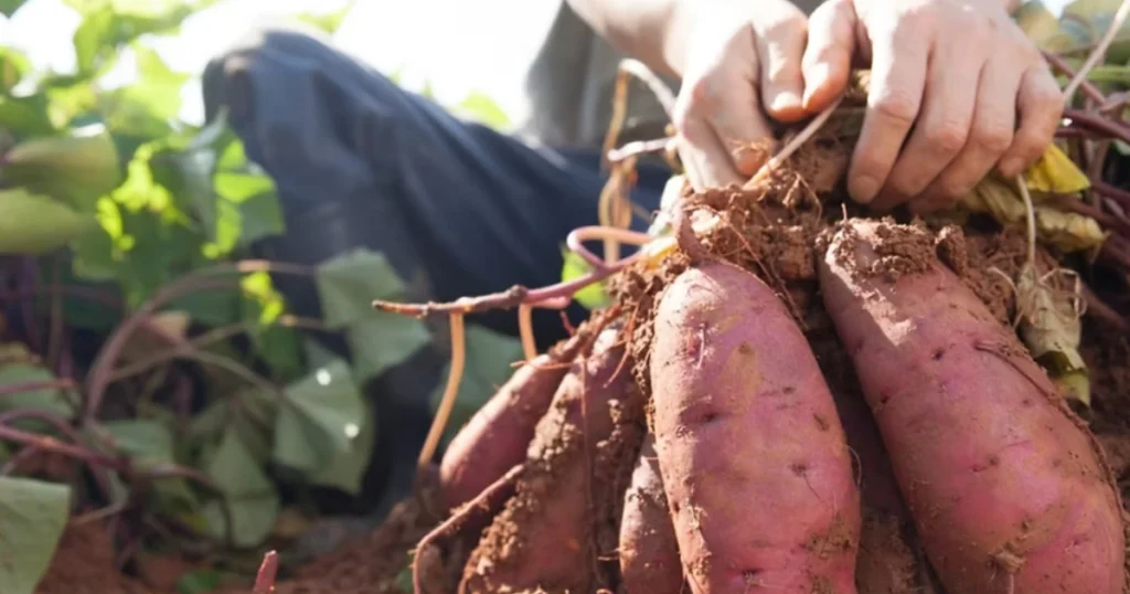 Sweet potatoes are planted using slips, which are sprouts grown from mature tubers. Rough handling during planting is a surprisingly common mistake that affects establishment.